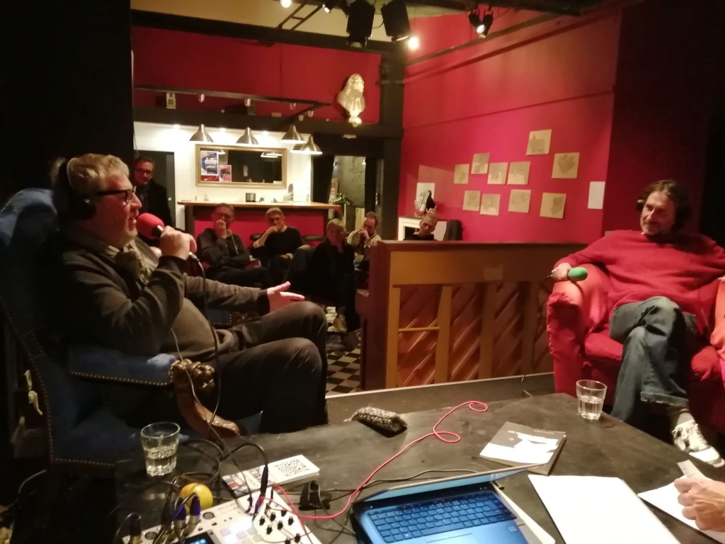 C’est un très bel écrin, le théâtre de la petite rue dans la petite rue de la Viabert, à Villeurbanne, qui vous accueille sous l’égide du buste de Monsieur de Molière et réservé à Cultures lives, le podcast créé par Gaële Baussier-Lombard, qui nous invitait, Stéphane Pétrier et moi, pour évoquer Jean-Louis Murat et le Voyage de Noz, ci-devants mes deux derniers sujets d’écriture. La petite scène pour l’enregistrement est dressée dans la première salle, il y a un bar, des fauteuils Empire et une ambiance ouatée, c’est accueillant en soi et ça l’est encore plus quand Guillaume Lebourgeois mène l’entretien avec la maestria de ceux qui ont lu les livres. Il parle d’entrée d’un exercice très littéraire, de l’apport d’un artisan à un autre, voit des analogies flatteuses (pour moi) dans nos parcours conjoints, à Jean-Louis et moi. Il a repéré des récurrences du mot atrabilaire, dans les notes - forcément répétitives - puisqu’on est chez Molière, je ravive le sous-titre du Misanthrope, le titre de mon premier recueil de notes de blog, aussi - l’hippocampe atrabilaire - quand je pensais dur comme fer que l’écriture d’un diariste n’était pas faite pour être éditée. Ce que je pense toujours, sauf si, dans le même livre, on propose également autre chose, comme c’est le cas pour Un monde sans Murat. Guillaume souligne l’audace de l’entretien post-mortem mais préfère s’attarder sur le pan strictement littéraire des nouvelles, parle des Endimanchées comme d’un exercice proustien, ça tombe bien, Murat s’est revendiqué proustien à vie, c’est l’objet de la dernière note de la somme. Je fais le lien avec les récents 40 ans des Noz, quand on était en droit d’observer ce beau monde en se demandant s’il avait vieilli ou s’il jouait à avoir vieilli. Stéphane, lui, annonce avoir détesté Murat à l’origine - trop beau, trop ténébreux - puis être petit à petit entré dans son univers jusqu’à être happé. C’est le premier moment-privilège de l’émission, quand, accompagné de Jérôme à la guitare et de Nathalie aux chœurs, il chante Petite Luge, qu’il a enregistré pour le projet Aura aime Murat, avec un immense talent. Placer le moine babillard, le théologicien de nos culs ignorants, ça n’est pas si aisé mais le silence qui saisit la dizaine de personnes présentes est éloquent. Wah! Il s’est vraiment passé quelque chose et j’ai eu 2´30 d’une absolue conscience de la chance qui était la mienne, hier. On s’y remet, il est question de la construction de ces deux ouvrages, du rapport à l’écriture, aux thèmes des nouvelles, qui allient connaissance du sujet muratien et distanciation. Je rappelle qu’en dehors des deux-trois moments fugaces que j’ai vécus avec lui, je n’ai jamais cherché à en savoir plus que ce qu’il donnait sur scène; que j’ai (déjà) mis vingt ans avant d’aborder Stéphane Pétrier. Guillaume rappelle que UMSM est tout sauf un livre de fan, c’est bien. On a déplacé un piano pour que Steph joue Près du vide, ce qu’il fait en deux temps, sans doute insatisfait mais là encore, pour moi, l’instant est magique, avec ce vers qu’il me faut souligner juste après : et se dire, sans frémir, que si tu me blesses, c’est peut-être de l’amour à l’envers. Molière regimbe un peu, parce que l’alexandrin est bancal mais Pétrier jubile parce qu’il ne le cherchait pas. Une interview, c’est court, et j’aurais pu rester des heures, et serais bien intervenu sur les séquences d’après, quand il y a eu lecture d’Henri Barbusse, qui mit sans un mot les impétrants entendus juste avant à leur place, sous les applaudissements. Il fut question, après l’entretien, d’amis d’enfance - et d’un étrange auto-suicide - d’autres de très longue date, d’un couscous délicieux et même d’un verre de Suze. D’un parcours de curiosité et de vie qui nous lie, Gaële et moi, depuis 15 ans. Ce sont des personnes comme ça qui font vraiment vivre la culture, qui prennent des risques parce que c’est tellement plus beau lorsque c’est inutile. Comme Anthony et son équipe, que je retrouve ce soir, avant de redescendre sur mes terres. Fatigué mais ravi.