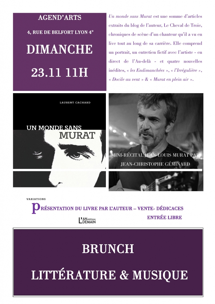 Je me souviens y avoir vu Denis Lecarme et Fred Dubois. Jean-Christophe et moi-même allons tenter de ramener un petit bout du Bougnat sur le devant de la (petite), ça sera sans prétention, sur mes terres ancestrales, le dimanche 23 novembre à 11h. Ça permettra de clore le week-end qui me verra, dès le jeudi, parler dans le poste de Radio B. avec Stéphane Pétrier des 40 ans des Noz et de ce Monde sans Murat, qu'il me tarde d'étrenner vraiment.